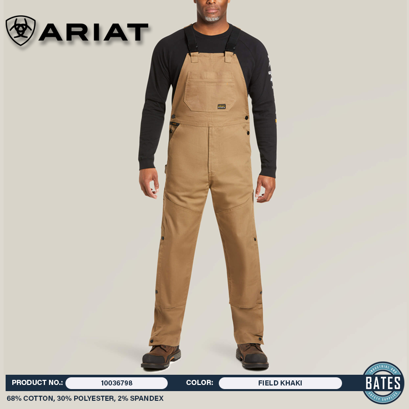 When the job gets down and dirty, this bib keeps you protected. The fabric is incredibly durable yet flexibly comfortable to work in. Triple-needle stitching adds extra strength. Storm flaps keep out mud and water. Easy in and out by way of hardware with a black powder-coated finish for a more modern look. 9 oz. ToughMax™ DuraStretch™ canvas, unlined bibs with adjustable elastic suspenders. 68% cotton, 30% polyester, 2% spandex. [Color: FIELD KHAKI]