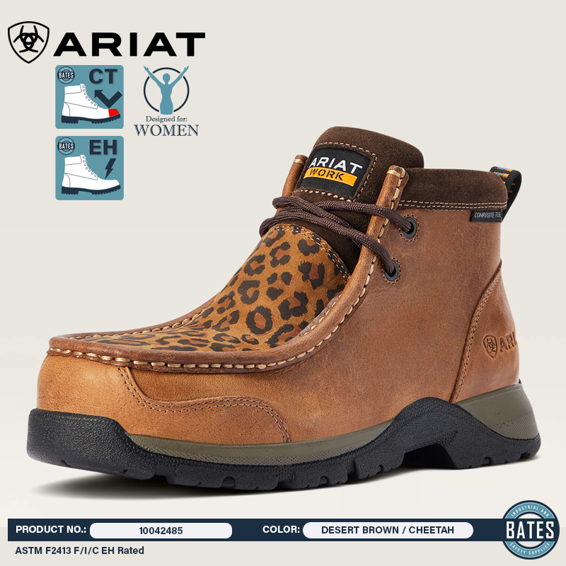 The moc toe look is back and on full display with these Edge LTE boots. Combining a Bantamweight sole for lightweight flexibility with a composite toe cap for added protection, these boots are perfect for any woman whose job takes them from the office to the worksite and back. [Color: DESERT BROWN / CHEETAH]