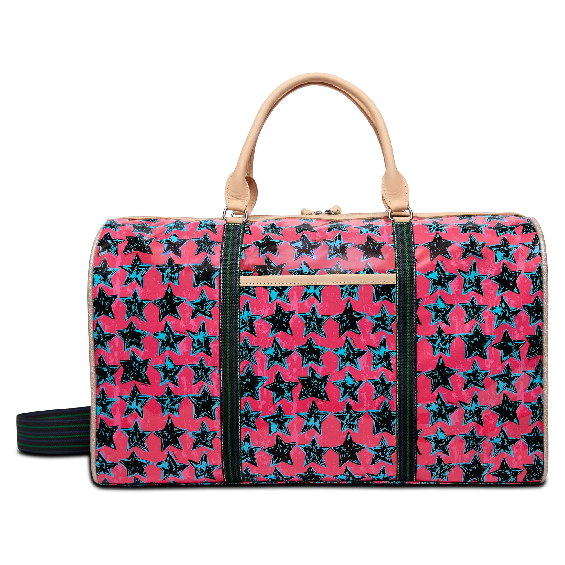 Our largest duffel style, the Weekender, is our go-to for weekend road trips. This leather duffel bag is roomy enough for all your essentials and features leather handles, an adjustable webbing strap, two interior pockets, and two exterior pockets. If you’re looking for a TSA carry-on compatible bag, check out the Jetsetter or the Zipper Tote!