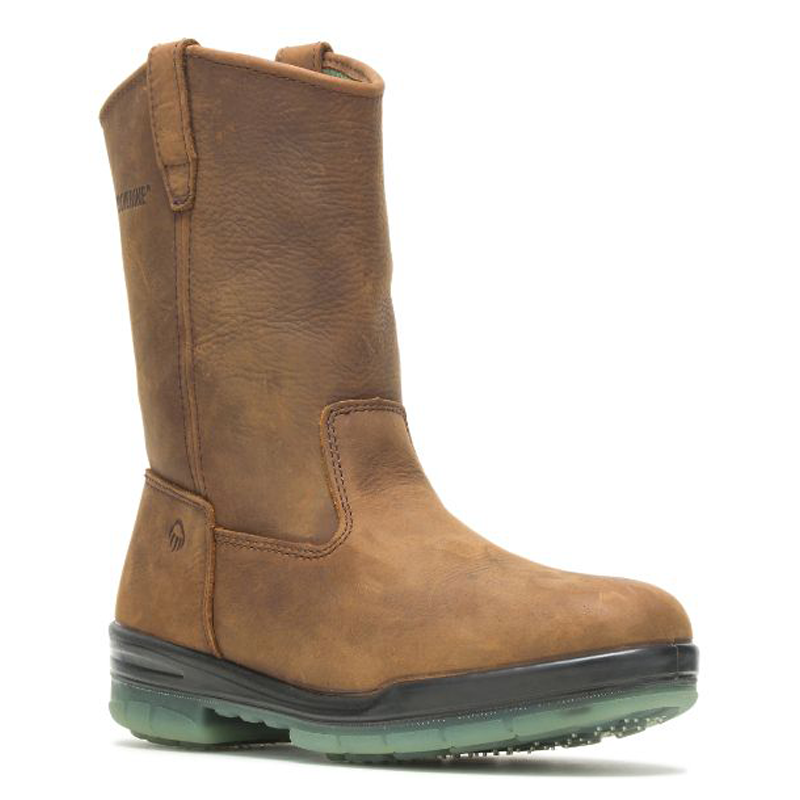 Offering rugged, reliable warmth and comfort, these waterproof DuraShocks® wellington work boots hold up to hard work. Engineered for energy all day with Wolverine DuraShocks®, and dry feet thanks to direct-attach construction and Dri-Lex®, these wellingtons return energy, cushion, and support without the weight for all-day comfort. ASTM F2413-18 M/I/C EH rated steel toe.